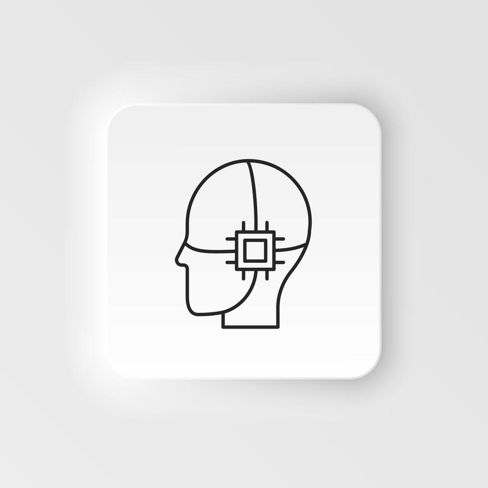 Drive, internal, intelligence neumorphic style vector icon, brain, chip icon - Vector. Artificial intelligence neumorphic style vector icon on white background Pro Vector