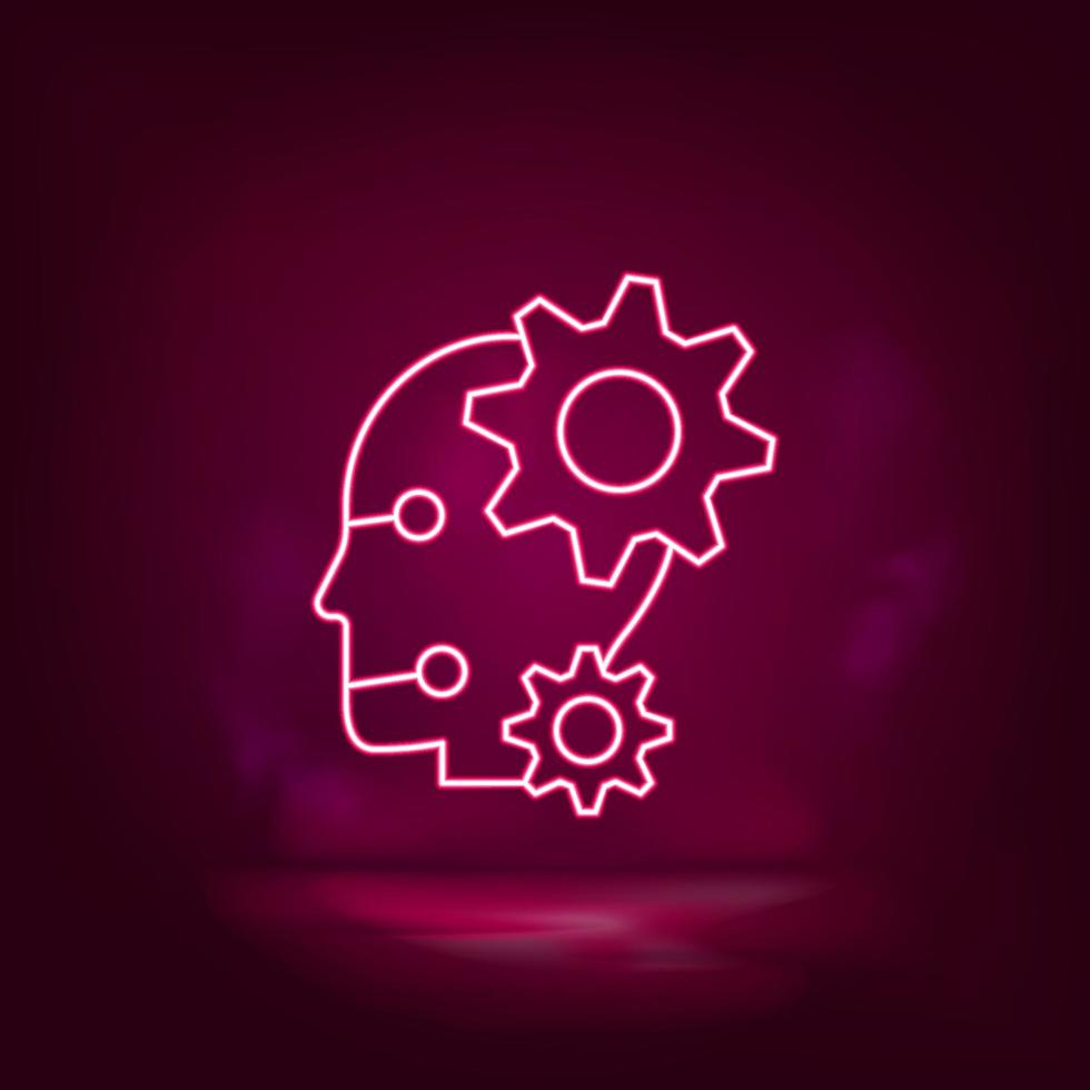 Robot, settings neon icon - vector. Artificial intelligence Pro Vector