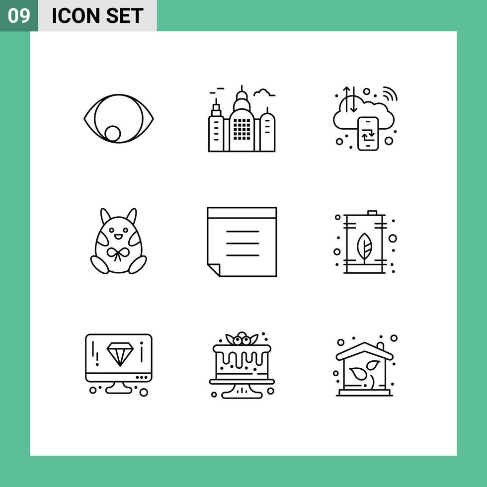 User Interface Pack of 9 Basic Outlines of text happy cloud baby chicken Editable Vector Design Elements