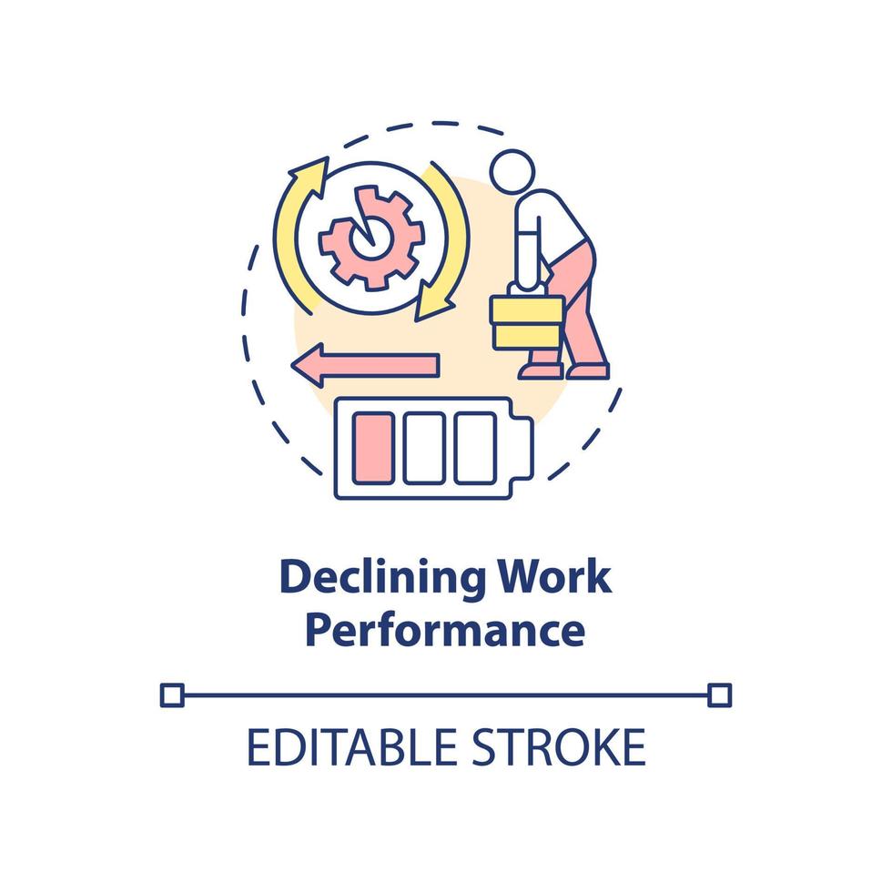 Declining work performance concept icon. Avoidance work tasks. Employee exhaustion abstract idea thin line illustration. Isolated outline drawing. Editable stroke Pro Vector