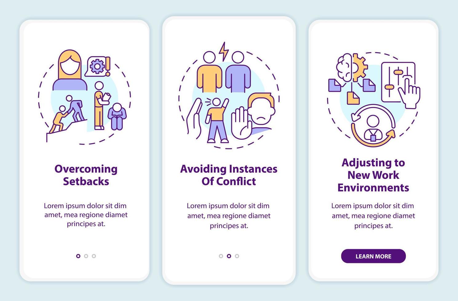 Benefits of resilient workforce onboarding mobile app screen. HR walkthrough 3 steps editable graphic instructions with linear concepts. UI, UX, GUI template Pro Vector