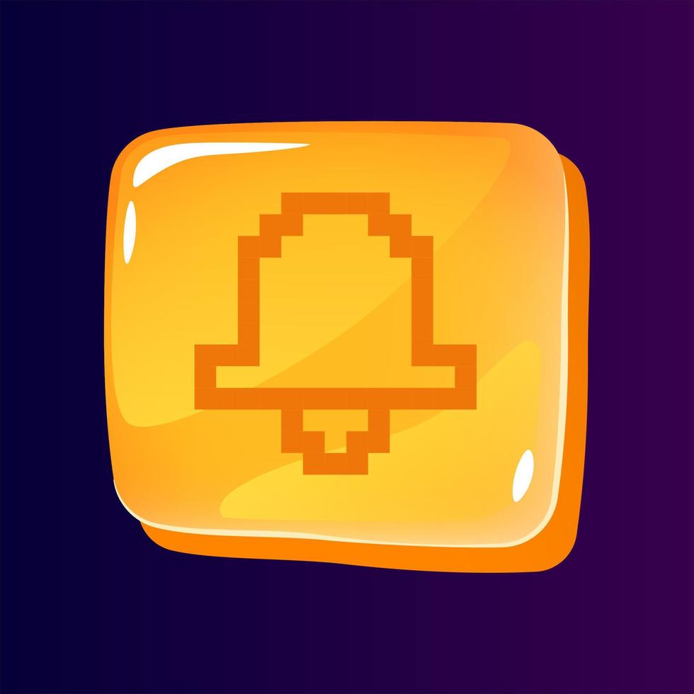 Bell glossy ui button with pixelated icon Pro Vector