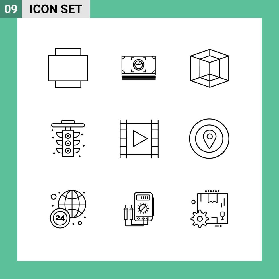 Pictogram Set of 9 Simple Outlines of stream multimedia tool media player light Editable Vector Design Elements