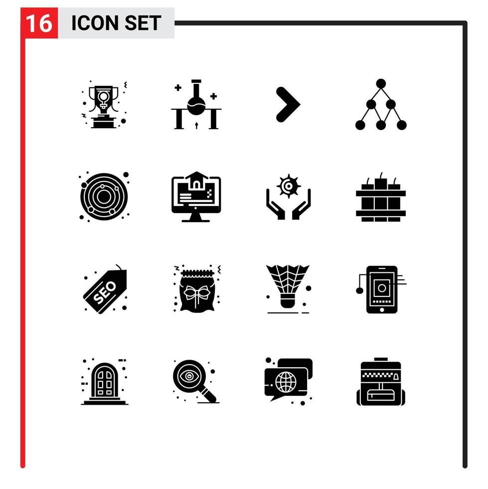 Pack of 16 Modern Solid Glyphs Signs and Symbols for Web Print Media such as earth social science lab network direction Editable Vector Design Elements Free Vector