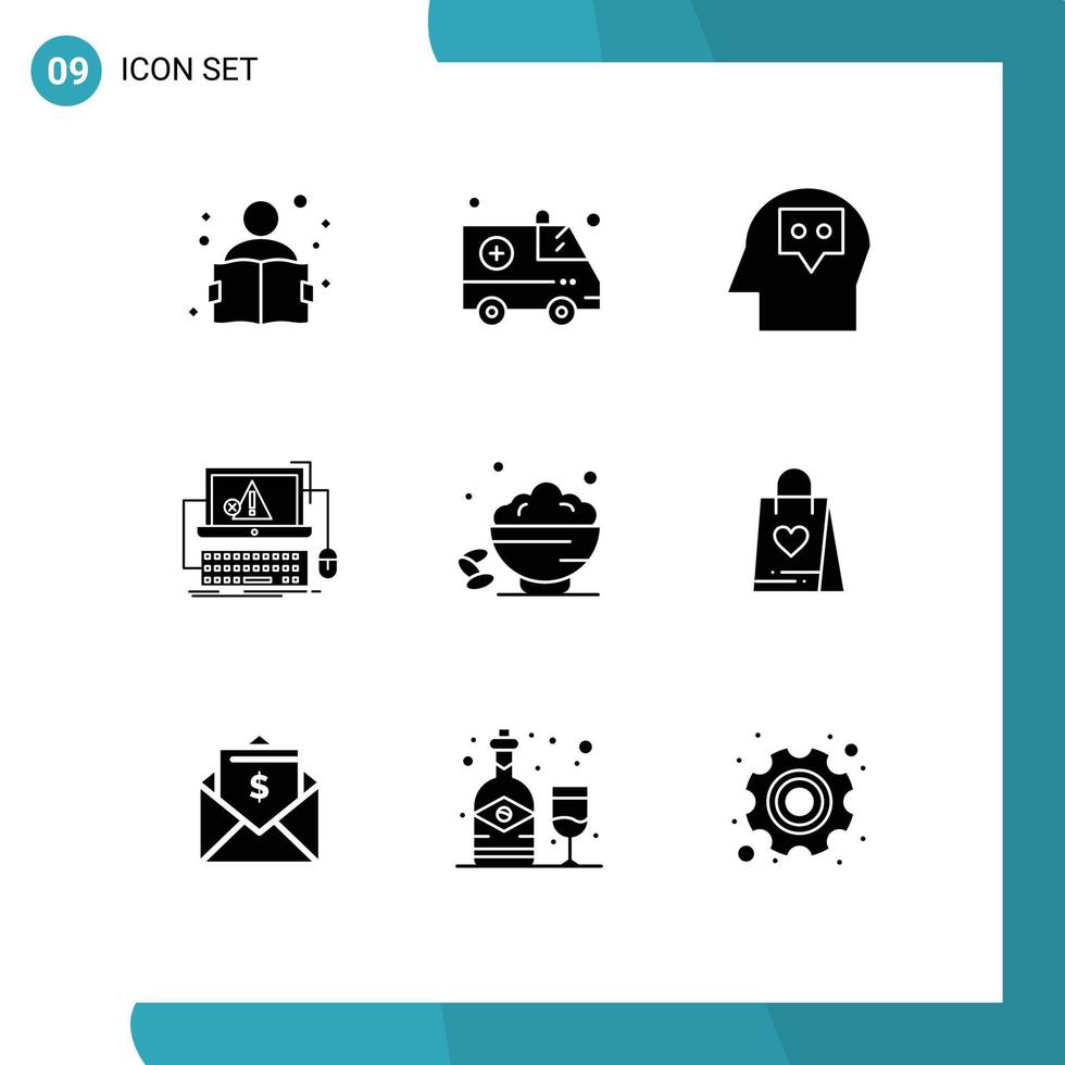 9 Universal Solid Glyphs Set for Web and Mobile Applications sweet dish idea system error Editable Vector Design Elements