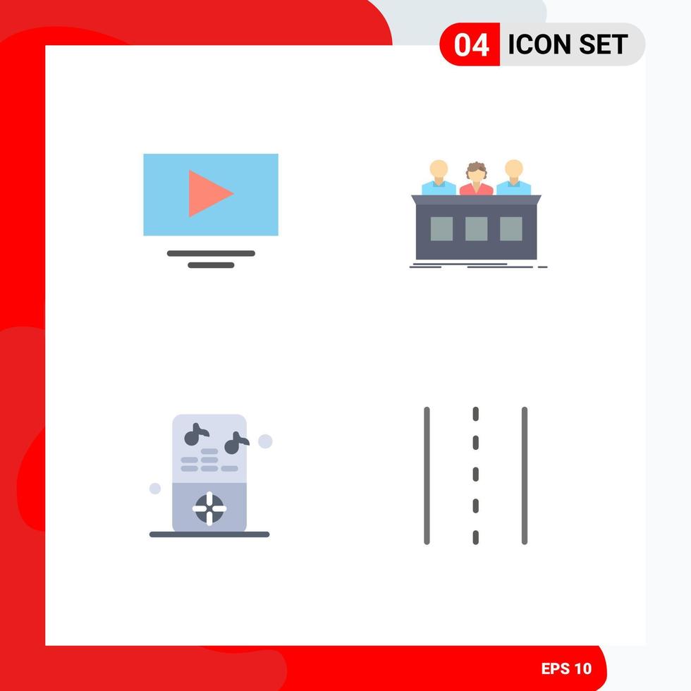 Pack of 4 Modern Flat Icons Signs and Symbols for Web Print Media such as video music competition judge player Editable Vector Design Elements Free Vector