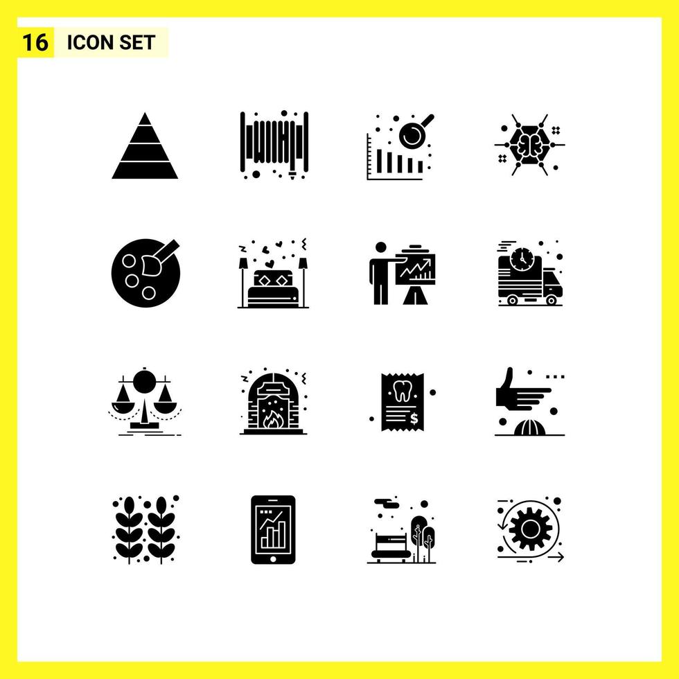 16 User Interface Solid Glyph Pack of modern Signs and Symbols of bed education data analysis drawing brainstorming Editable Vector Design Elements
