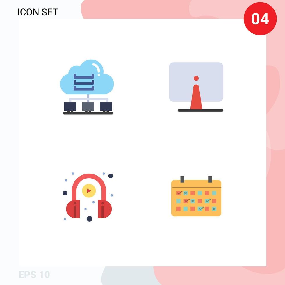 Set of 4 Vector Flat Icons on Grid for network monitor connect computer headphone Editable Vector Design Elements