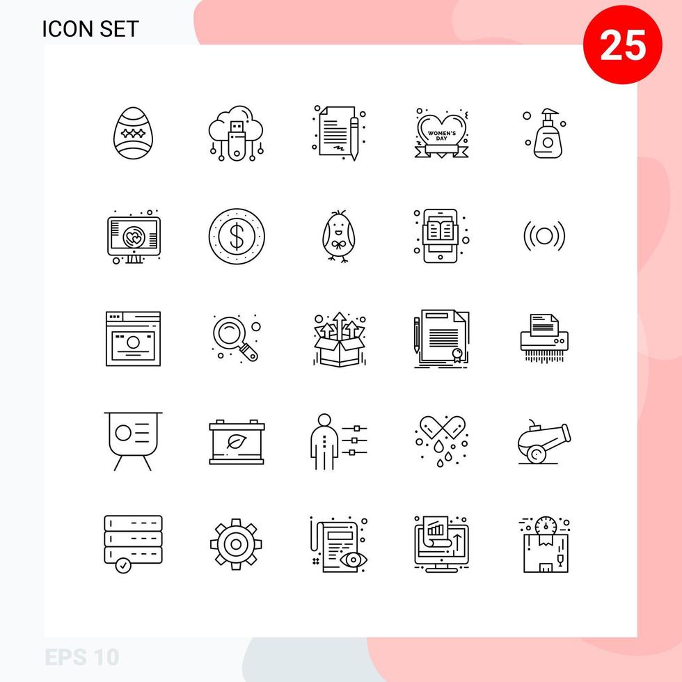 25 Thematic Vector Lines and Editable Symbols of bottle happy store day document Editable Vector Design Elements