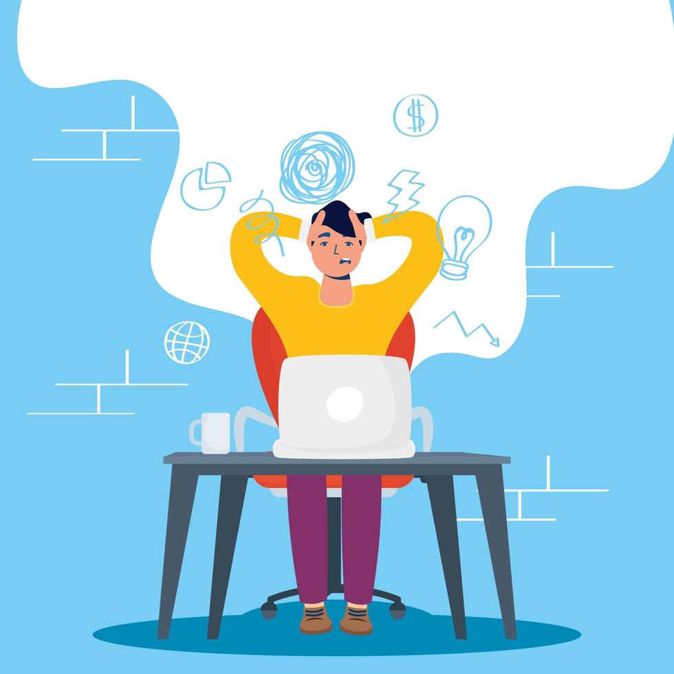 Stressed man using the computer vector