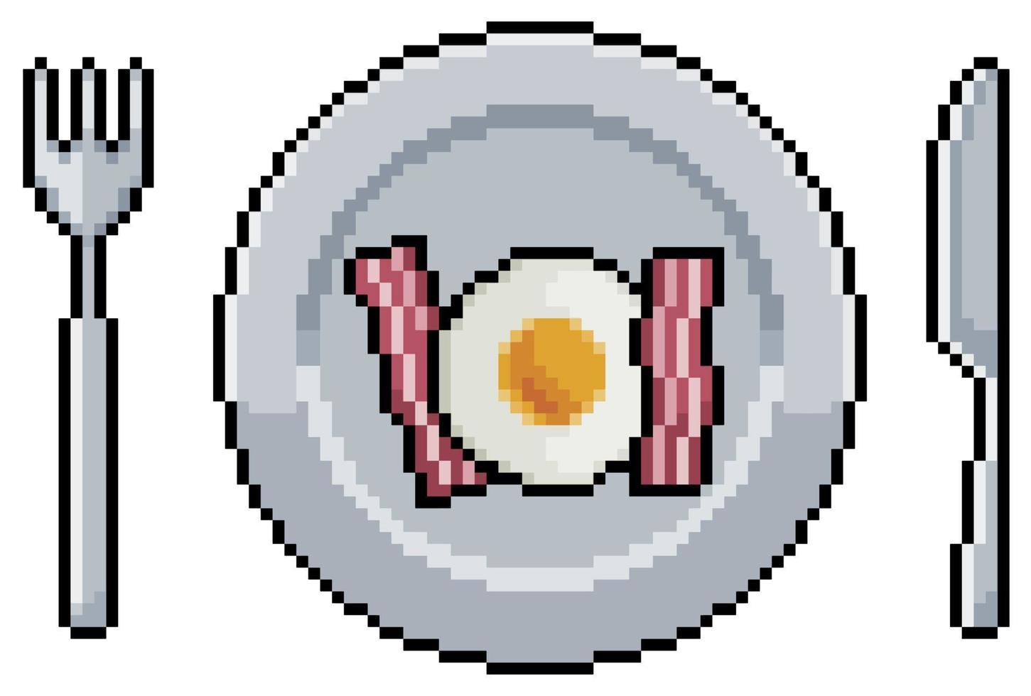 Pixel art plate with fried eggs and bacon vector icon for 8bit game on white background Pro Vector