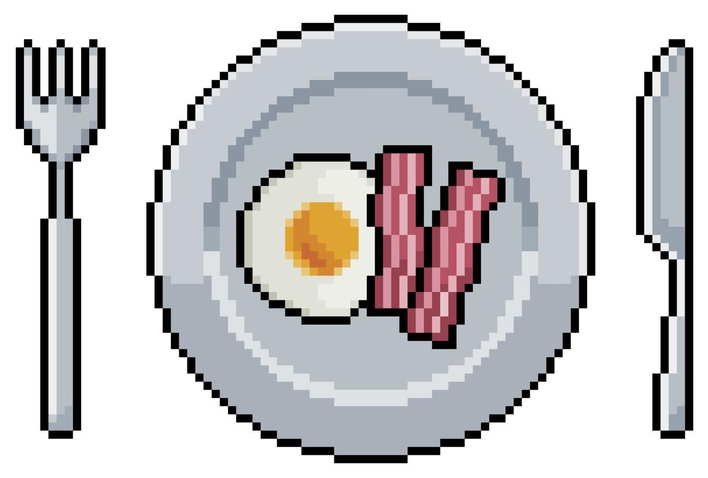 Pixel art plate with fried eggs and bacon vector icon for 8bit game on white background Pro Vector