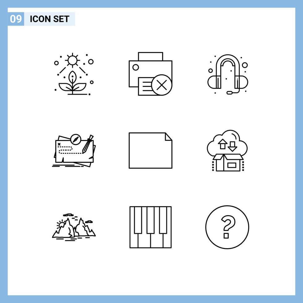 User Interface Pack of 9 Basic Outlines of document quest printer mission game Editable Vector Design Elements
