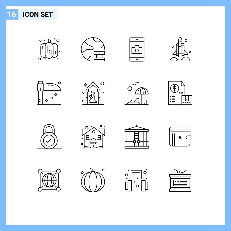 Editable Vector Line Pack of 16 Simple Outlines of halloween transport application spaceship launcher Editable Vector Design Elements Free Vector