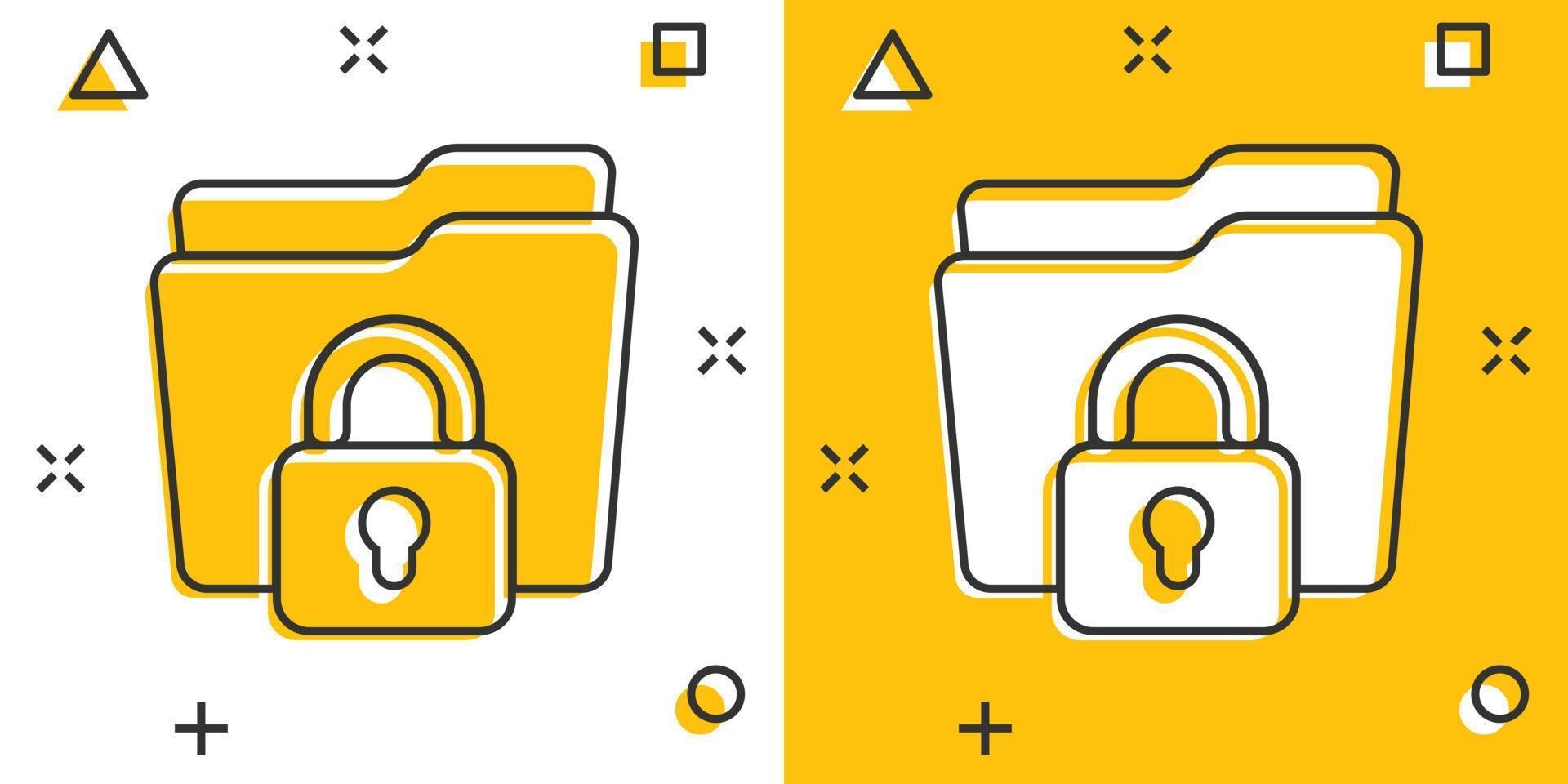 Files folder permission icon in comic style. Document access cartoon vector illustration on isolated background. Secret archive splash effect sign business concept. Pro Vector