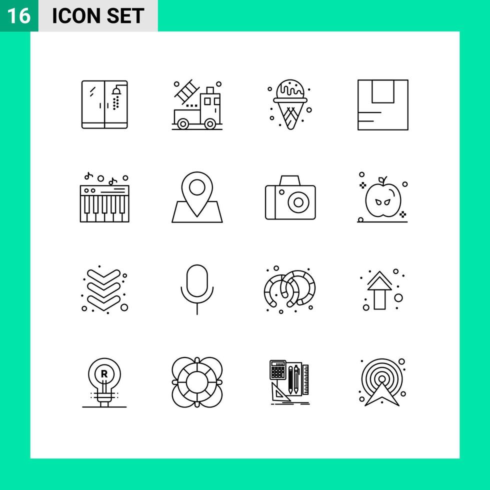 Mobile Interface Outline Set of 16 Pictograms of map piano ice cream music logistic Editable Vector Design Elements