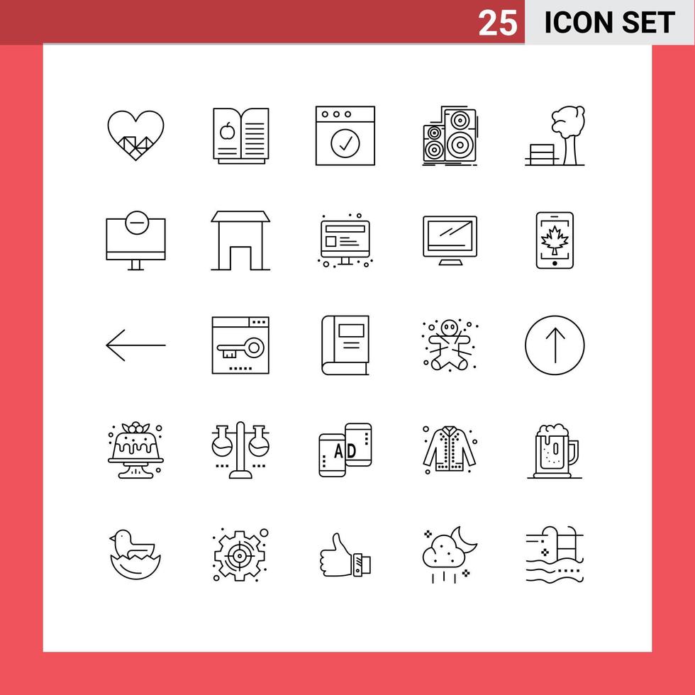 Group of 25 Modern Lines Set for tree nature mac bench speaker Editable Vector Design Elements