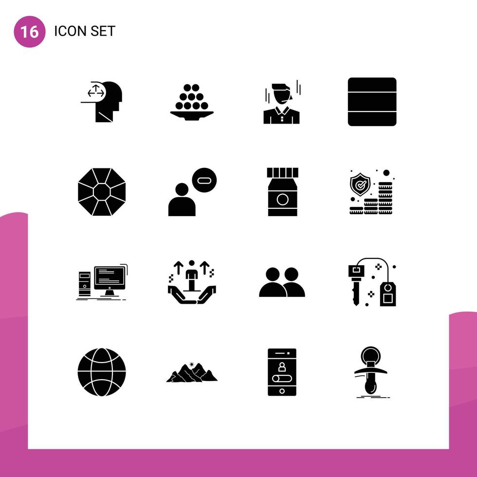 16 Universal Solid Glyphs Set for Web and Mobile Applications stack grid laddu man manager Editable Vector Design Elements