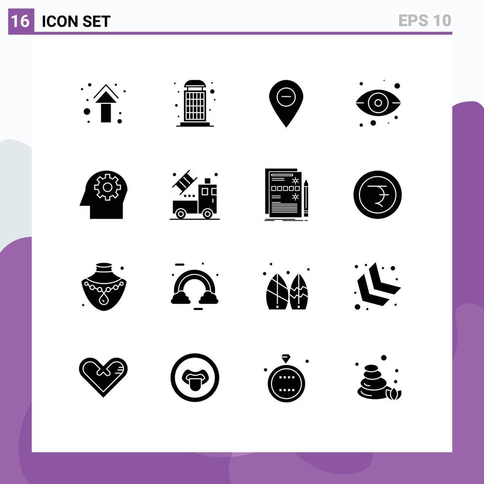 Editable Vector Line Pack of 16 Simple Solid Glyphs of view server call eye marker Editable Vector Design Elements