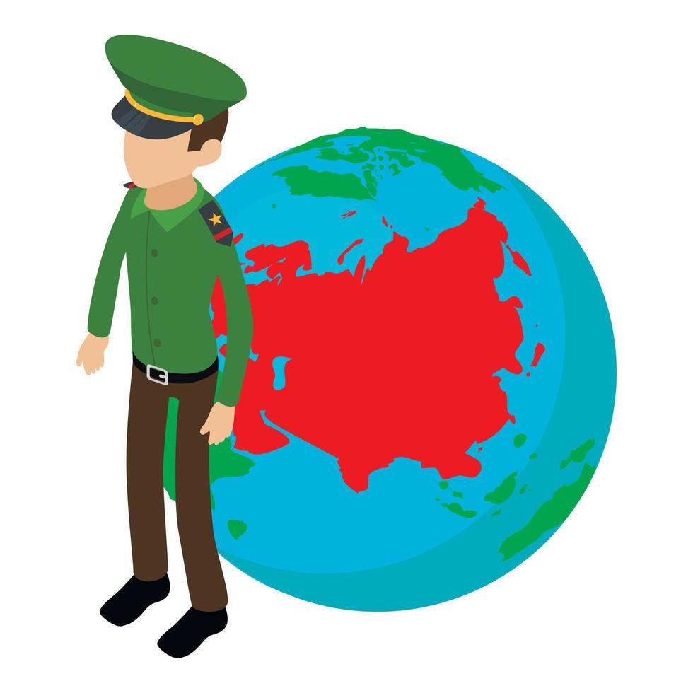 Army general icon isometric vector. Soviet general on background of planet earth Pro Vector
