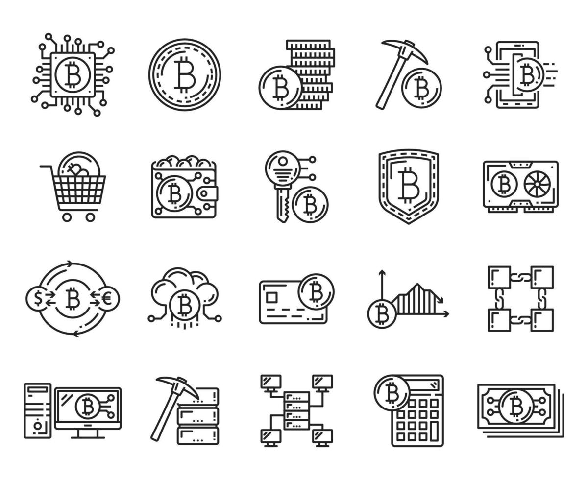 Cryptocurrency, bitcoin mining, blockchain icons Pro Vector
