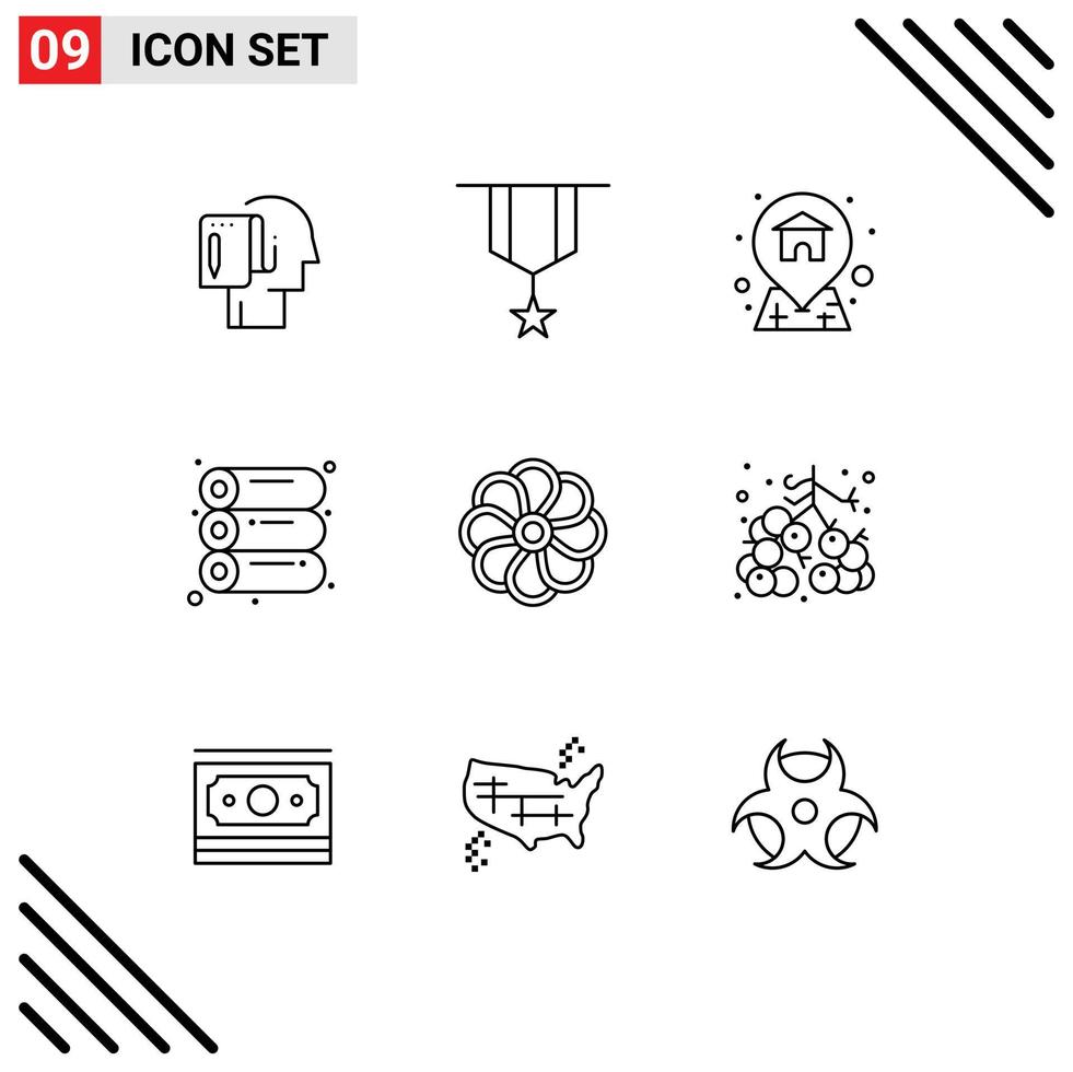 Pack of 9 Modern Outlines Signs and Symbols for Web Print Media such as nature printing medal offset location Editable Vector Design Elements Free Vector
