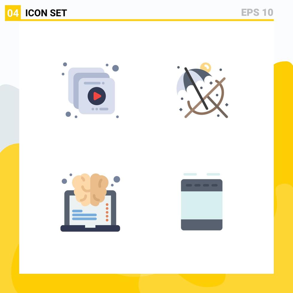 Set of 4 Vector Flat Icons on Grid for collection think beach brain gas Editable Vector Design Elements Free Vector