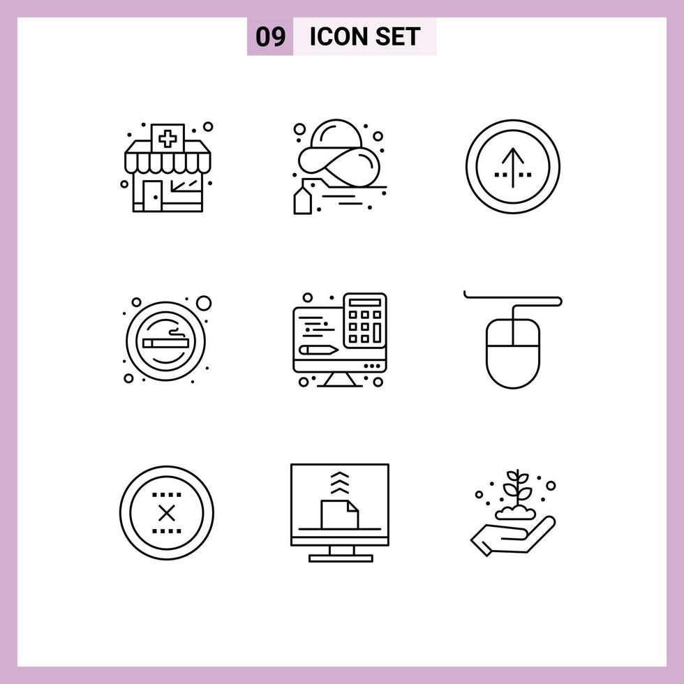 Pictogram Set of 9 Simple Outlines of smoking sign arrow place ui Editable Vector Design Elements