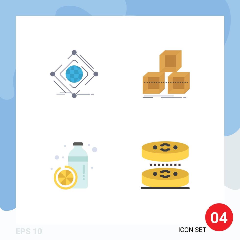 4 Universal Flat Icons Set for Web and Mobile Applications complex bottle net design healthy Editable Vector Design Elements
