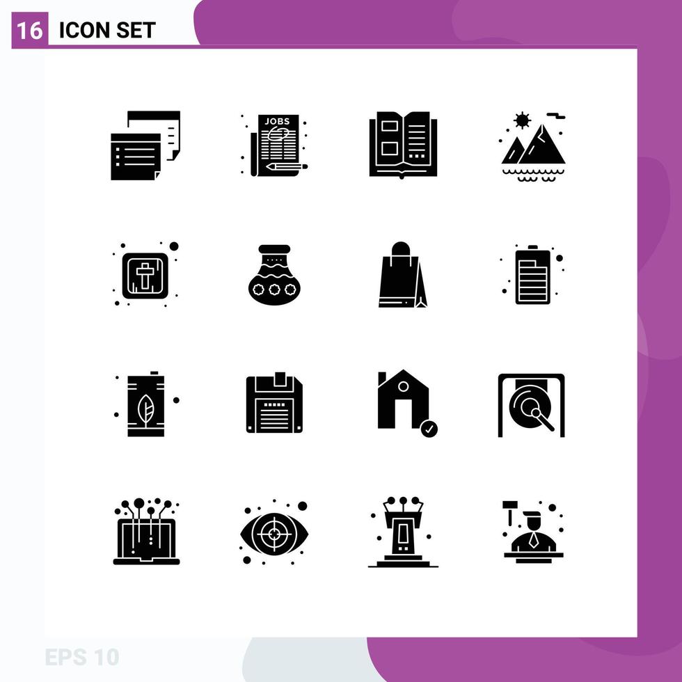 Set of 16 Vector Solid Glyphs on Grid for cross sun select job summer reading Editable Vector Design Elements Free Vector