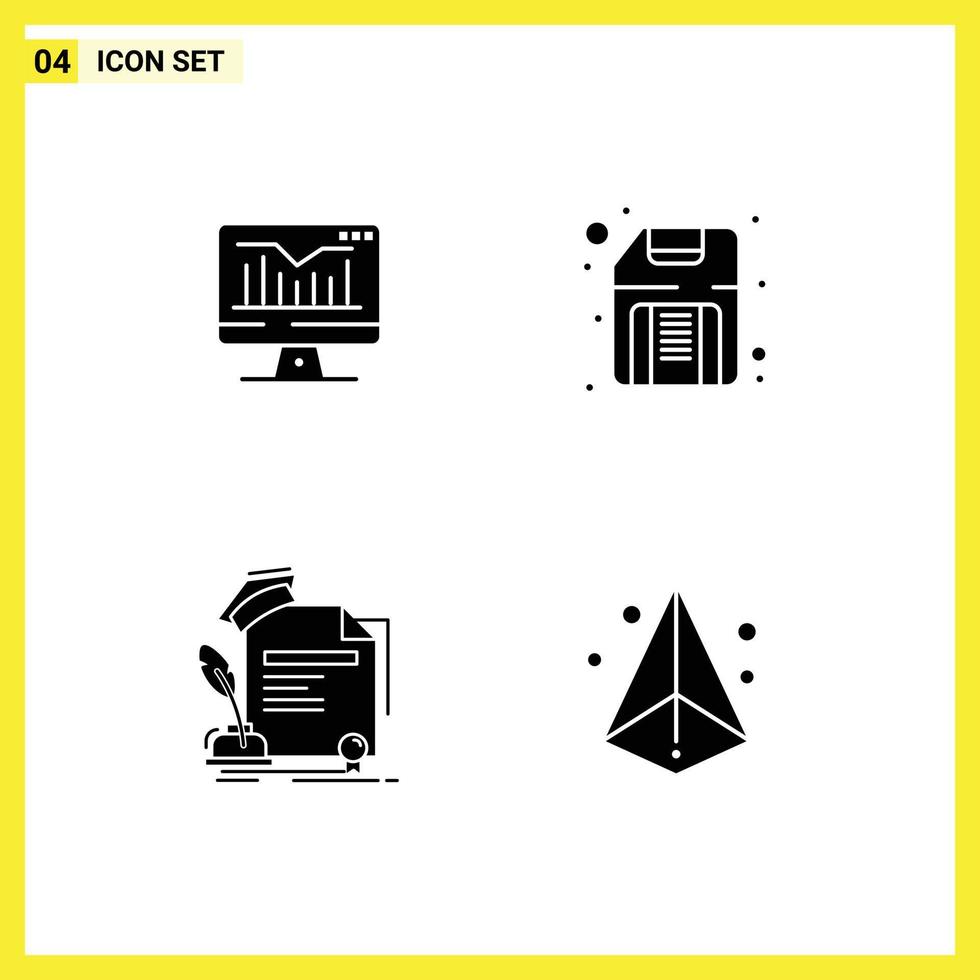 Set of 4 Modern UI Icons Symbols Signs for computer degree monitor floppy award Editable Vector Design Elements