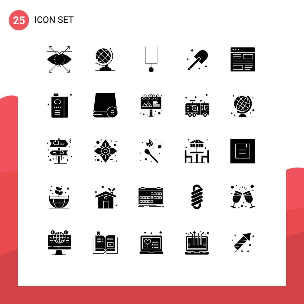 Modern Set of 25 Solid Glyphs and symbols such as layout design music application garden Editable Vector Design Elements Free Vector