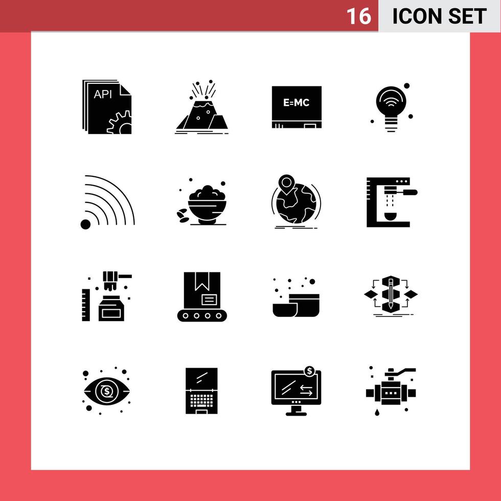 Set of 16 Vector Solid Glyphs on Grid for wifi internet of things alert internet formula Editable Vector Design Elements Free Vector