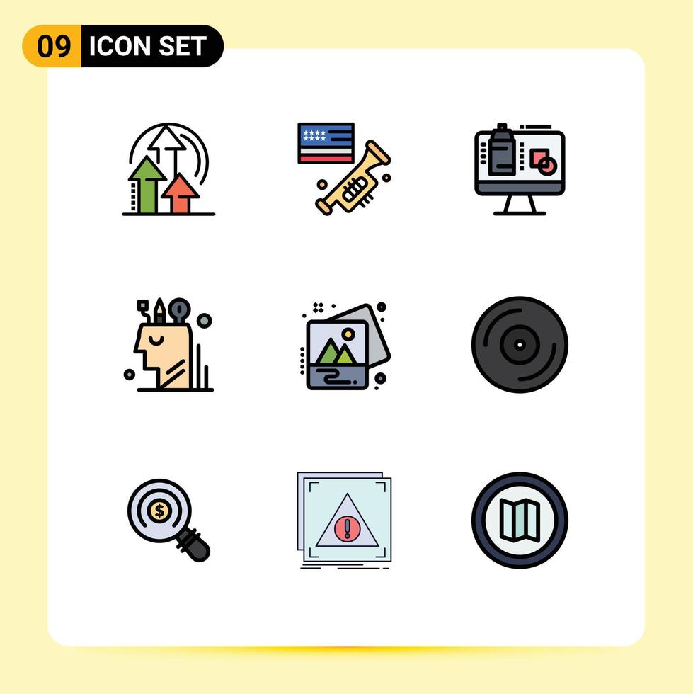 Set of 9 Modern UI Icons Symbols Signs for image user computer mind art Editable Vector Design Elements