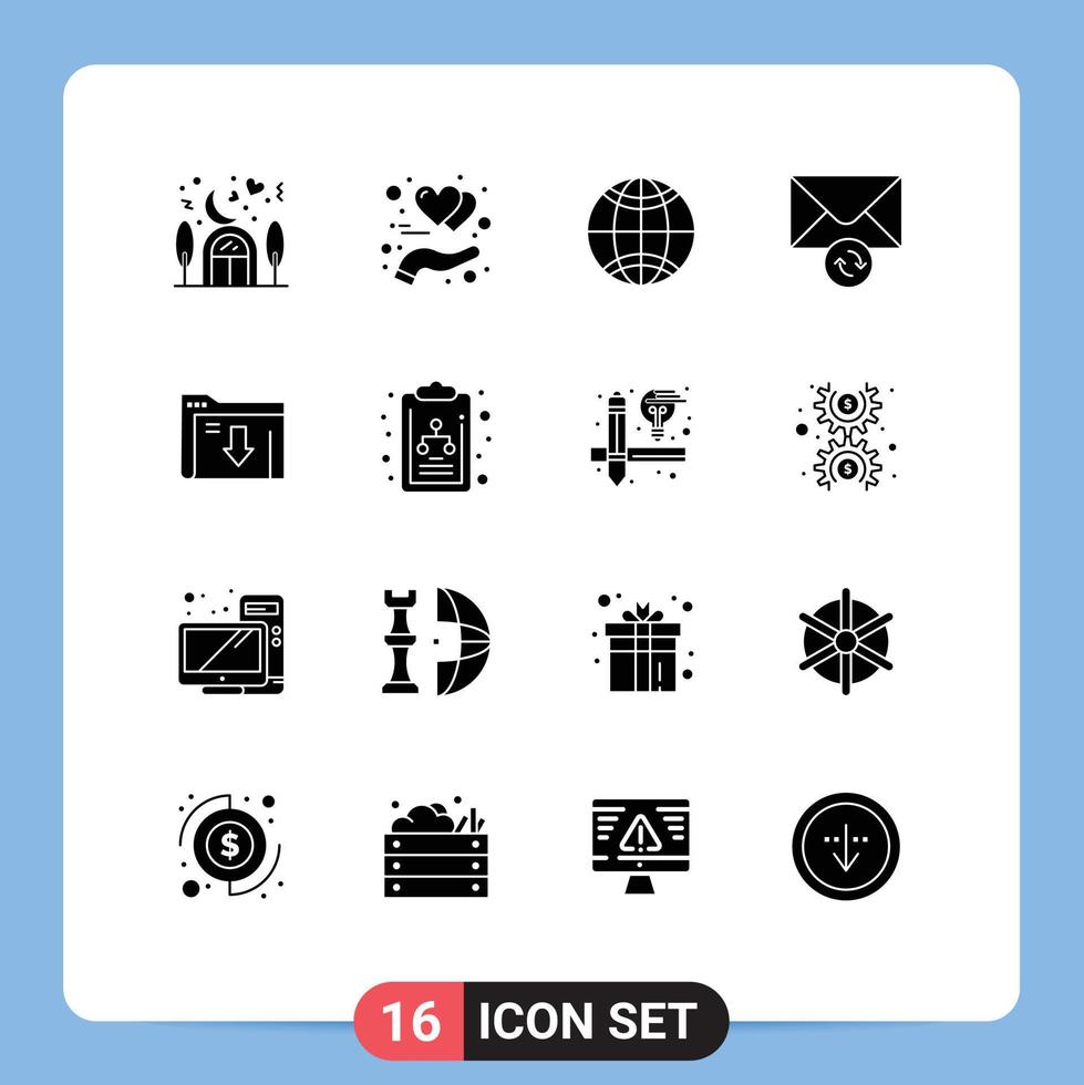 Set of 16 Modern UI Icons Symbols Signs for download folder global data message Editable Vector Design Elements