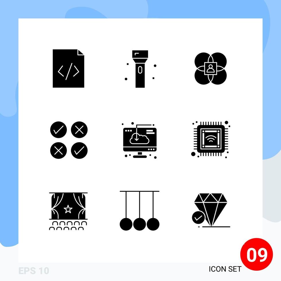 Mobile Interface Solid Glyph Set of 9 Pictograms of cloud design character cross person Editable Vector Design Elements Free Vector