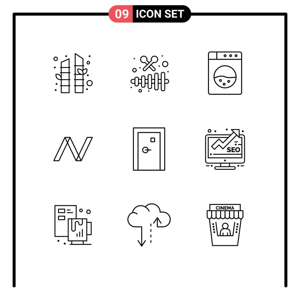 Set of 9 Modern UI Icons Symbols Signs for analysis exit washing door aperture Editable Vector Design Elements Free Vector