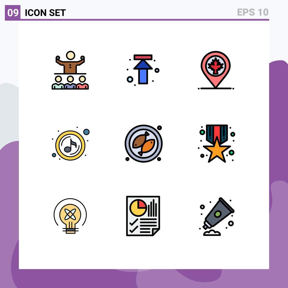Set of 9 Modern UI Icons Symbols Signs for camping quaver upload play leaf Editable Vector Design Elements Free Vector