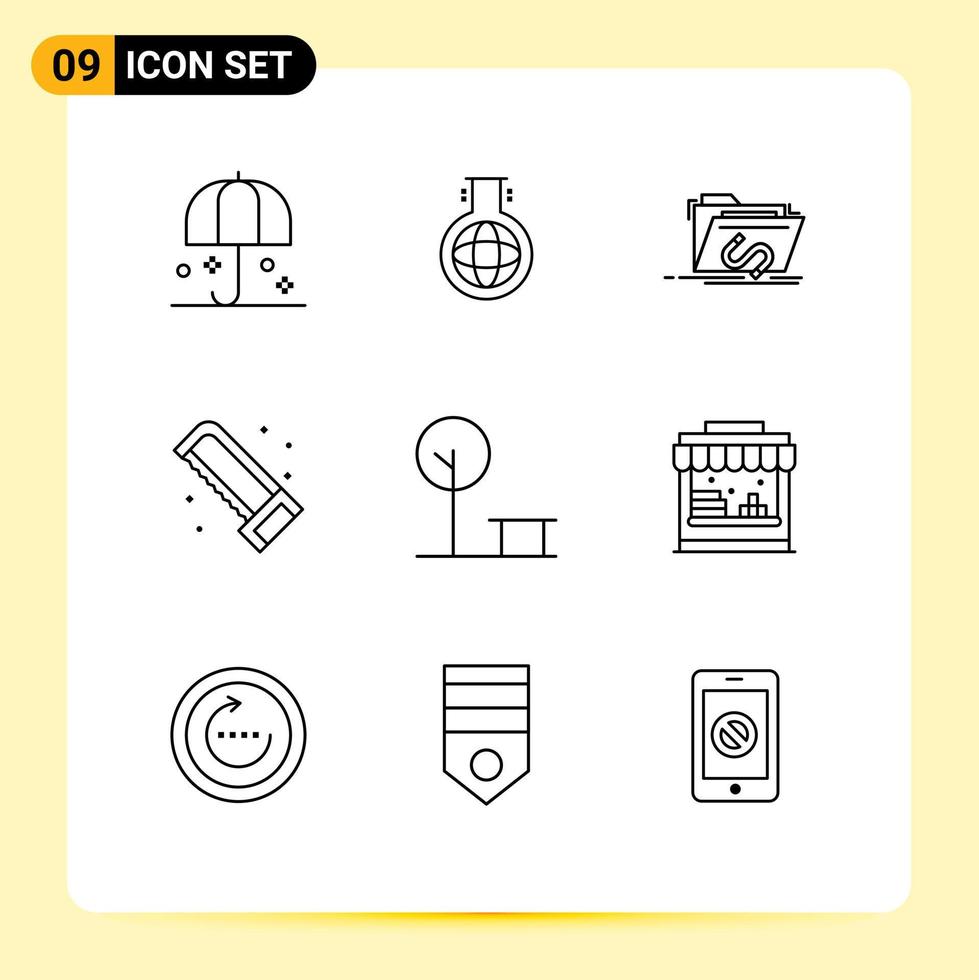 Modern Set of 9 Outlines Pictograph of saw plumber experiment mechanical internet Editable Vector Design Elements Free Vector and Free SVG
