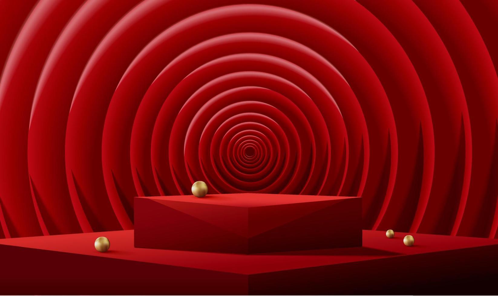 3d rendering of blank product background for product presentation, modern red podium background Pro Vector