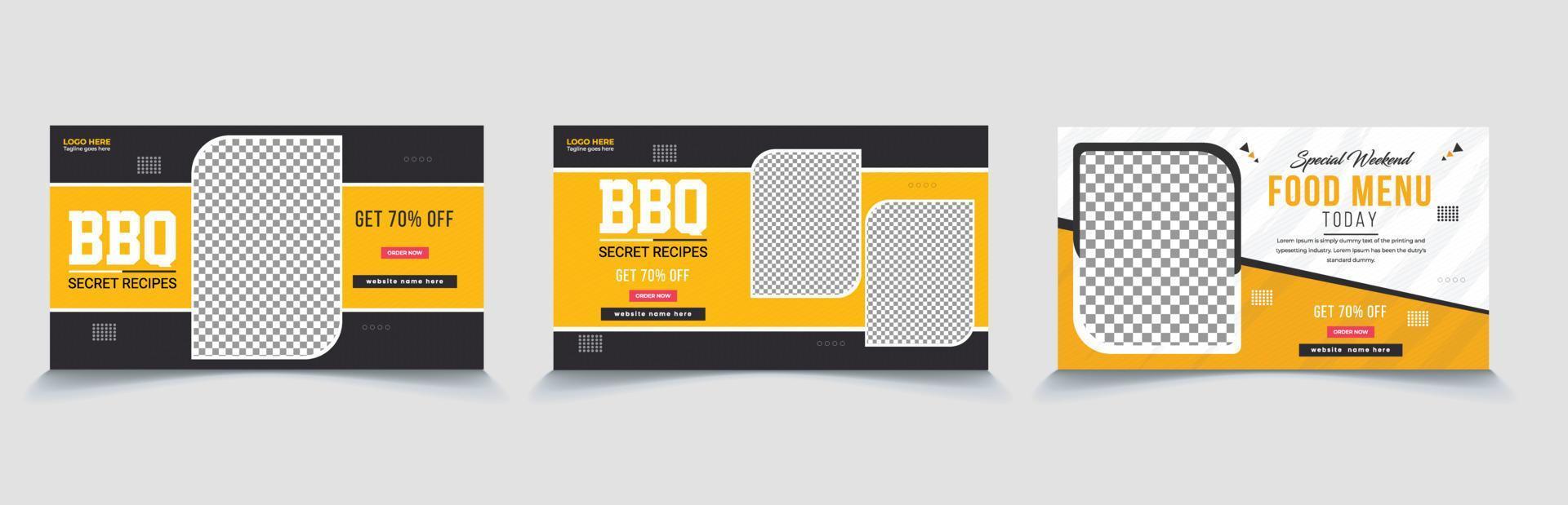 Secret recipes BBQ web page banner and video thumbnail design template vector editable file, easy-to-clip image, text for ready to upload Pro Vector