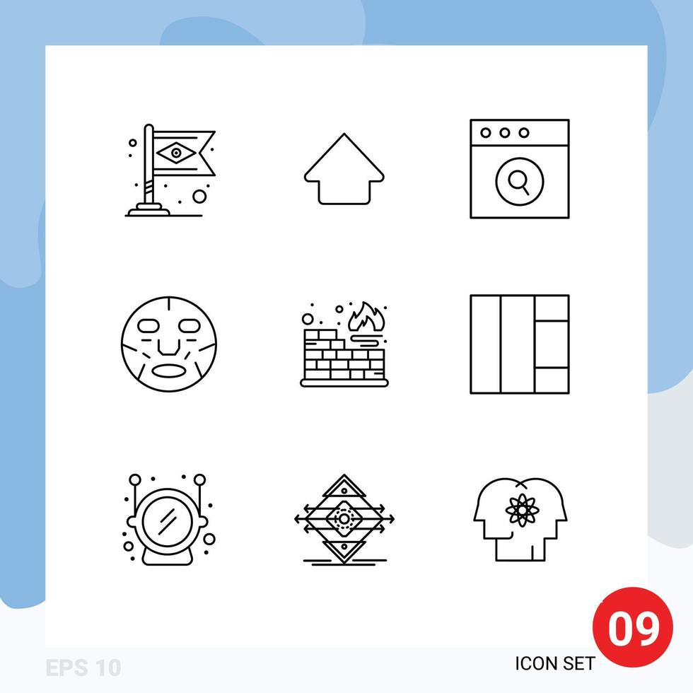 Pictogram Set of 9 Simple Outlines of protection database mac wellness face Editable Vector Design Elements