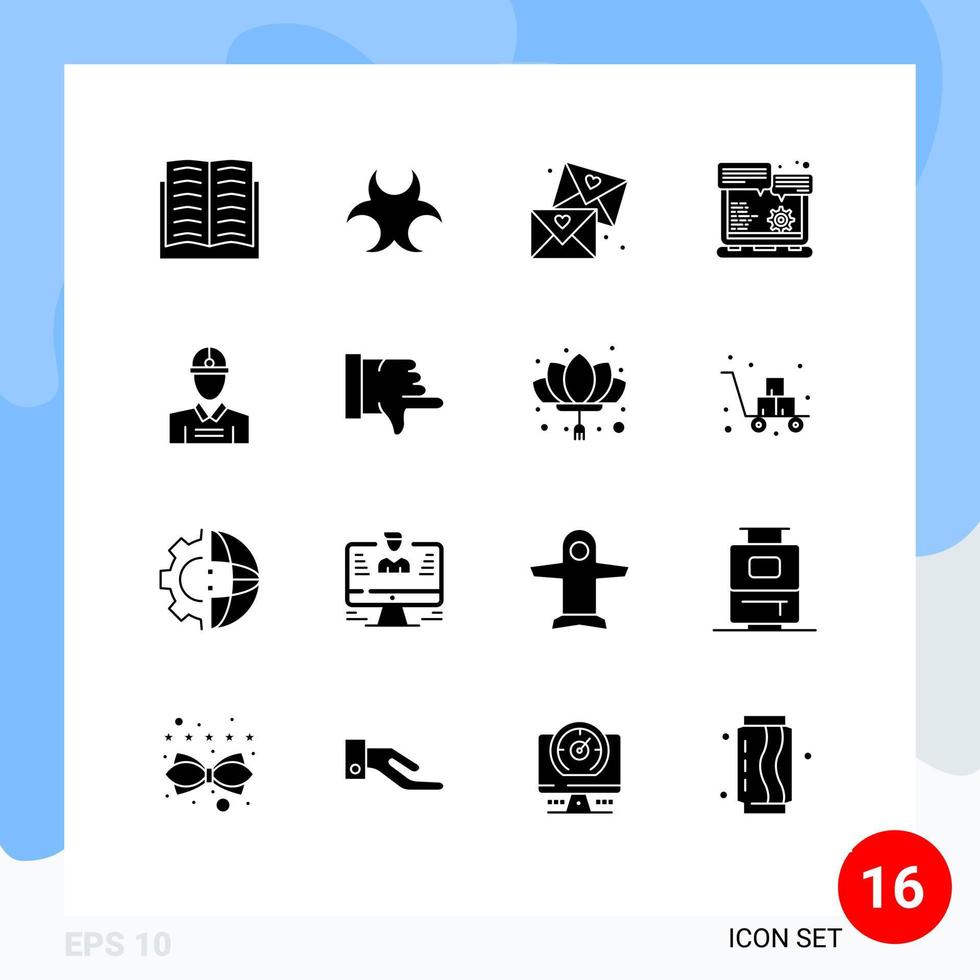 Pack of 16 Modern Solid Glyphs Signs and Symbols for Web Print Media such as engineer option email gear browser Editable Vector Design Elements Free Vector