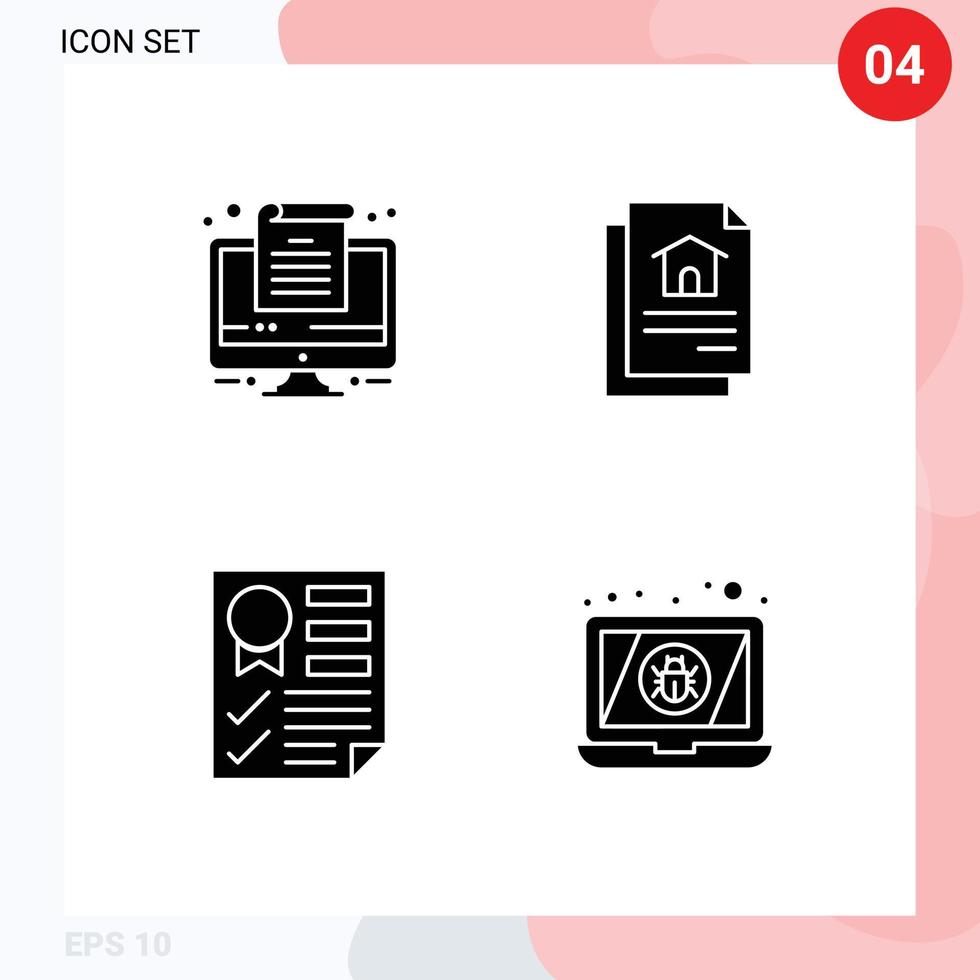 Pack of 4 creative Solid Glyphs of computer report file data bug Editable Vector Design Elements