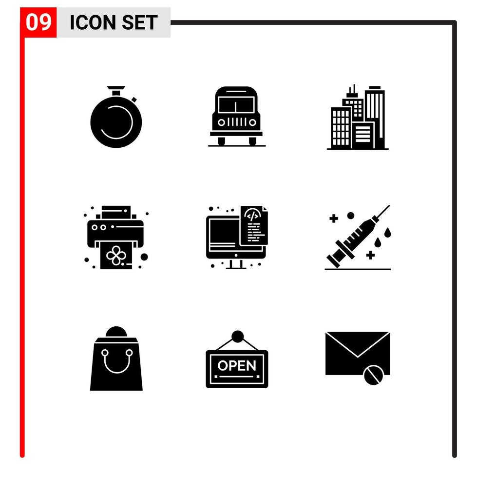 9 User Interface Solid Glyph Pack of modern Signs and Symbols of files optimization building coding print Editable Vector Design Elements Free Vector