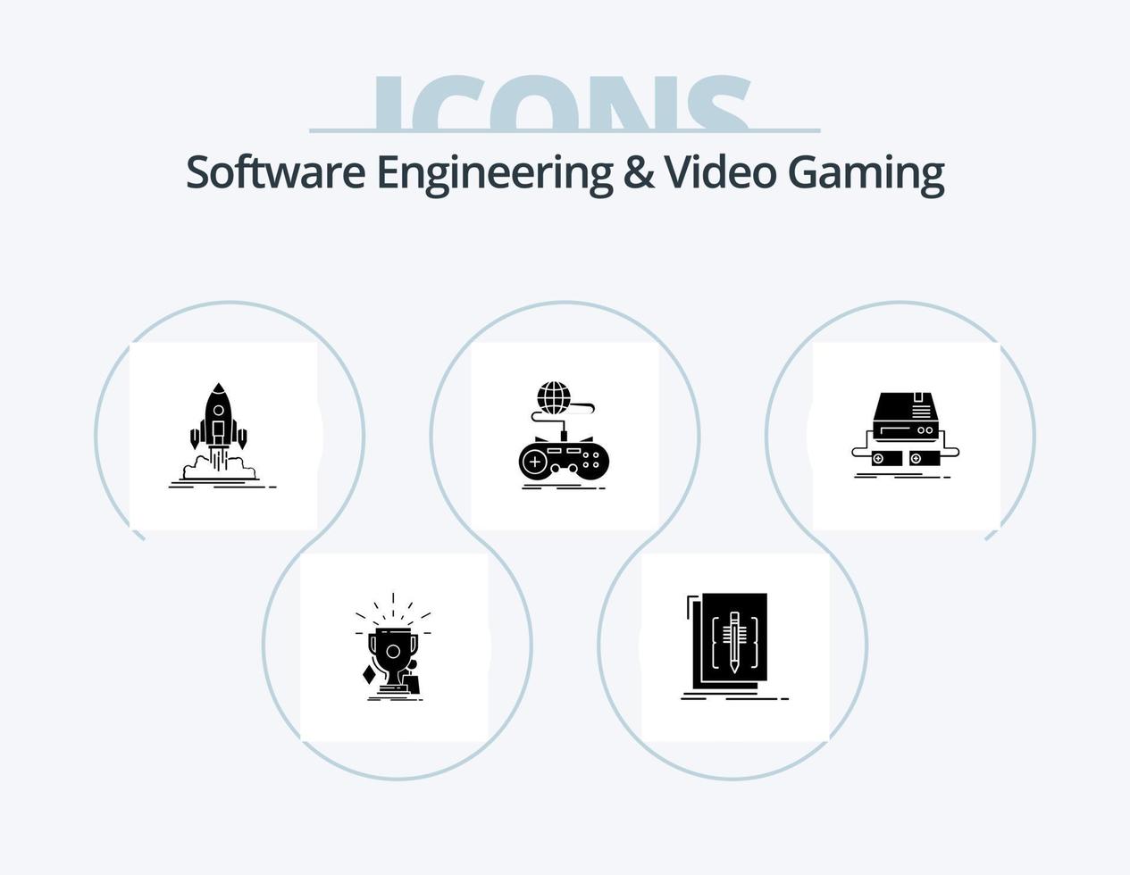 Software Engineering And Video Gaming Glyph Icon Pack 5 Icon Design. internet. game. language. publish. shuttle Free Vector