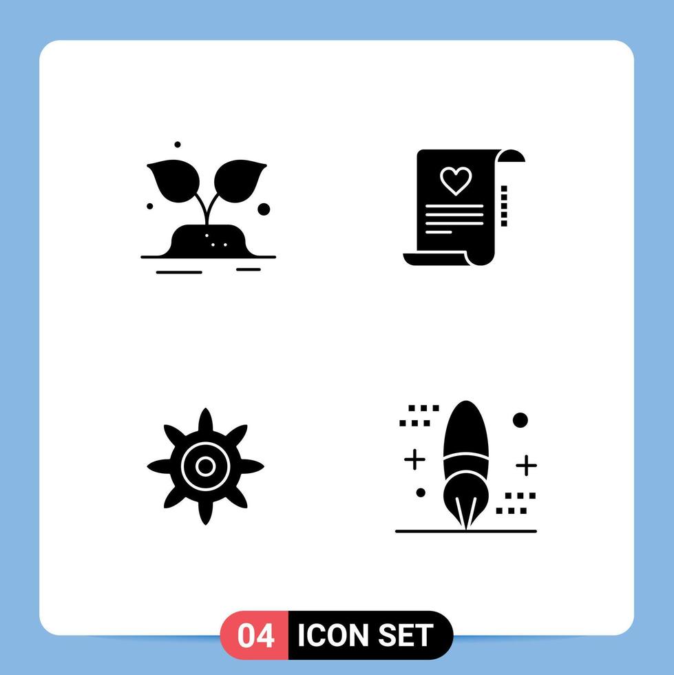 Pack of 4 Modern Solid Glyphs Signs and Symbols for Web Print Media such as green setting save document brush Editable Vector Design Elements