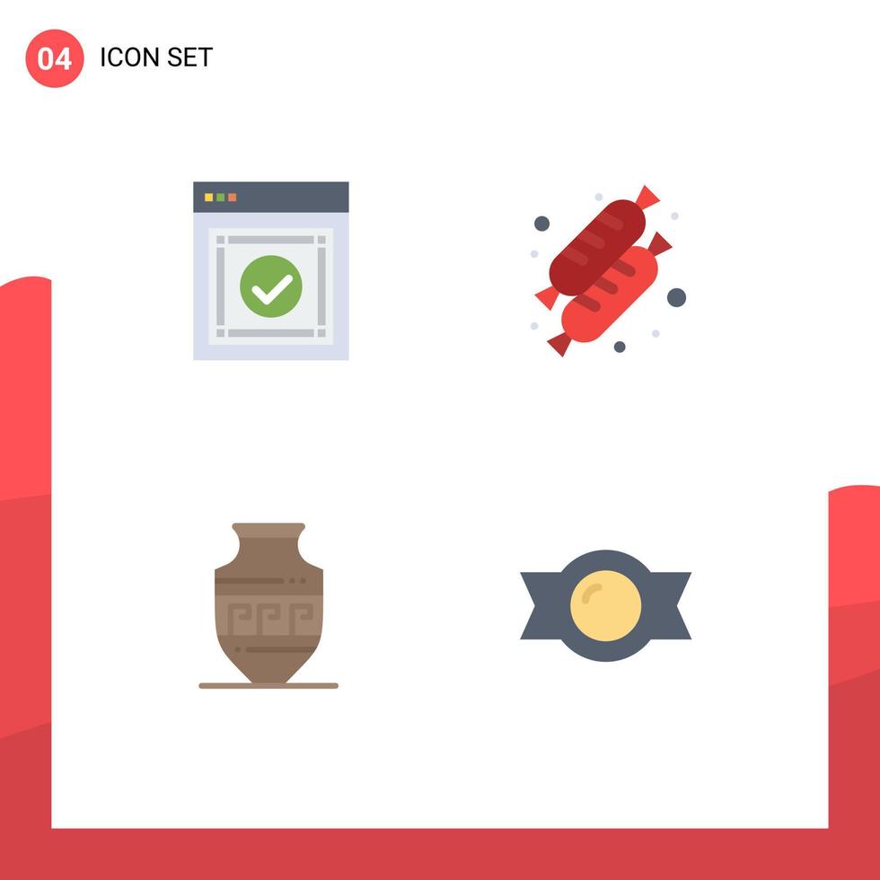 Modern Set of 4 Flat Icons Pictograph of message ancient jar web cake jar Editable Vector Design Elements