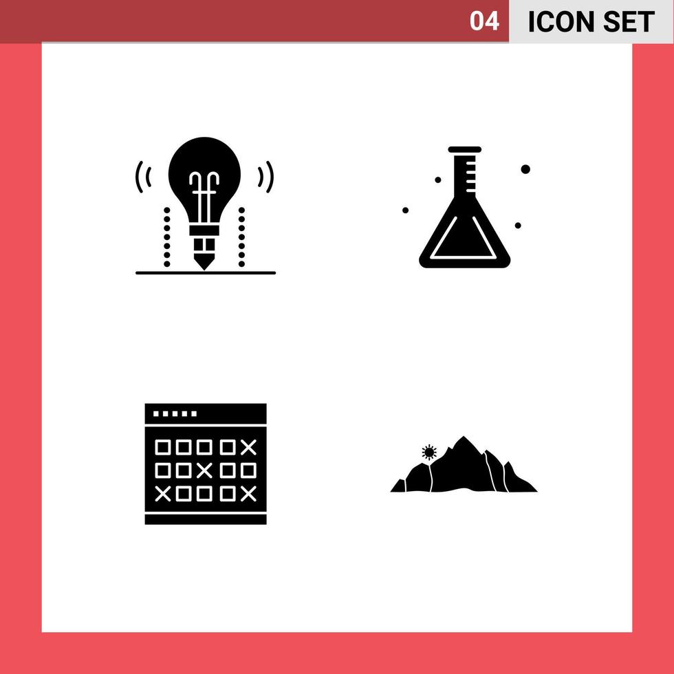 4 Thematic Vector Solid Glyphs and Editable Symbols of idea calendar solution lab event Editable Vector Design Elements