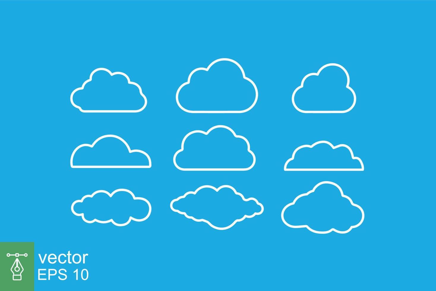 Set of vector cloud icon. Simple outline style. Abstract, decoration element, set of sky symbol, nature concept. Thin line vector illustration isolated on blue background. EPS 10. Pro Vector